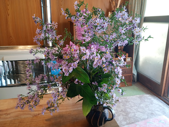 今日は友人が、自宅に咲いた花を持って遊びに来てくれました! お花をささっと摘んで、とってもかわいい秋の花束にしてきてくれて、素敵だなぁ、嬉しいなと思ったのでした。 -