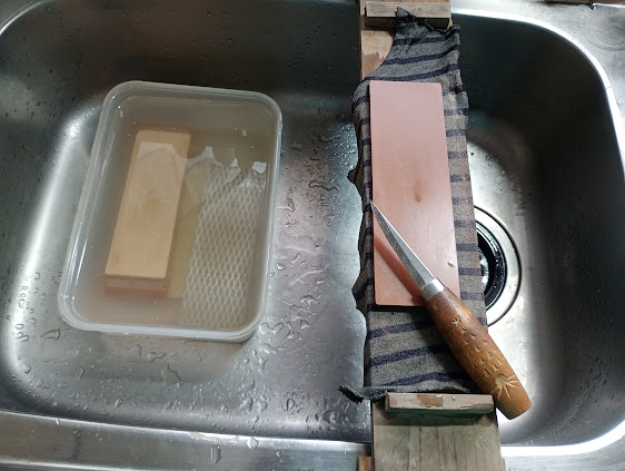 今日は刃物を研ぎました。 私は中砥石(1000番)で研いだ後に、仕上げ砥石(6000番)で仕上げています。 シンクに板を渡して、その上に砥石を置いて研ぎます。 私はあまり得意とはいえない研ぎなのですが、切れない刃物を使うと危ないので、ワーク... -