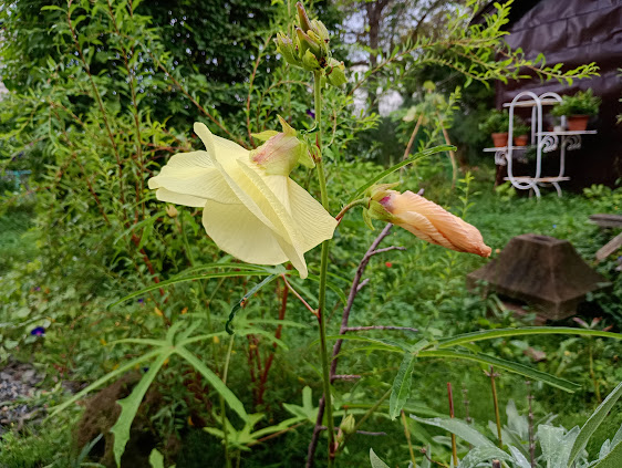 トロロアオイは一日しか咲かないのです(朝咲いて、夕方にしぼみます)。
