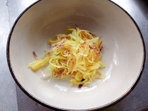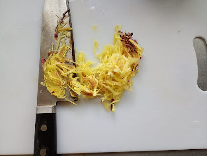 エディブルフラワー(食べられる花)とのことなので、さっそく千切りにしてみました。