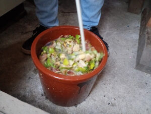 この日の作業は、ヘラでしごいてホウキモロコシの実をとること。
