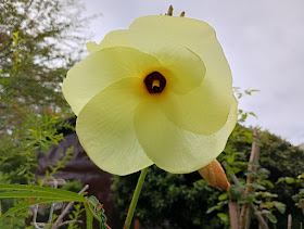 トロロアオイの花が咲きました。 母がお友達にもらった種を育てたものです。 トロロアオイは根から抽出される粘液が「ネリ」と呼ばれ、和紙をつくるときの糊の役割をしているそうな。 これは美濃和紙で有名な美濃市に住んでいた頃に教えてもらったこと。 ... -